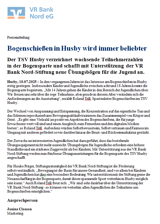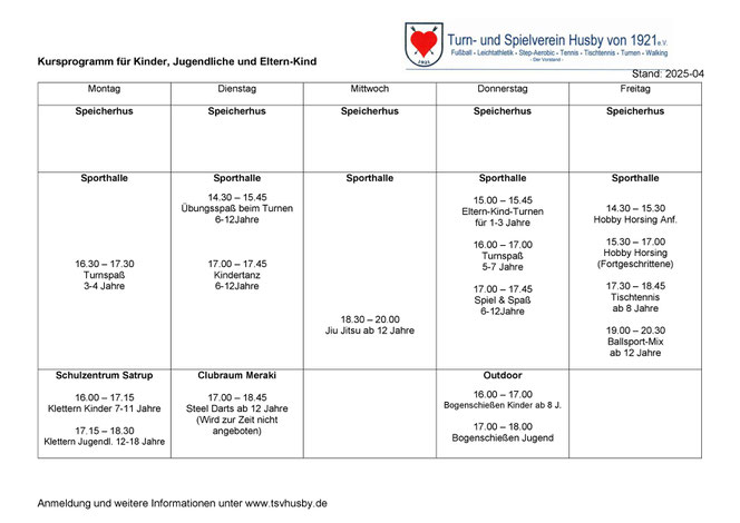 Der TSV Husby bietet seinen rund 1100 Mitgliedern, vom Kleinkind bis zum Senior, ein breit gefächertes, sportliches Angebot in diversen Sparten.